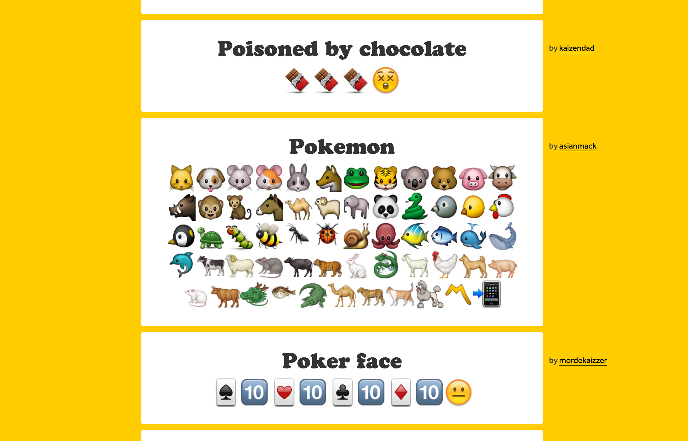 But back then, emoji was still a new thing in the world. Soon after we launched the site, it became a somewhat legitimate Internet reference for this new form of communication. People started citing it, using it to draft up longform emoji messages, and posting all sorts of bizarre things.