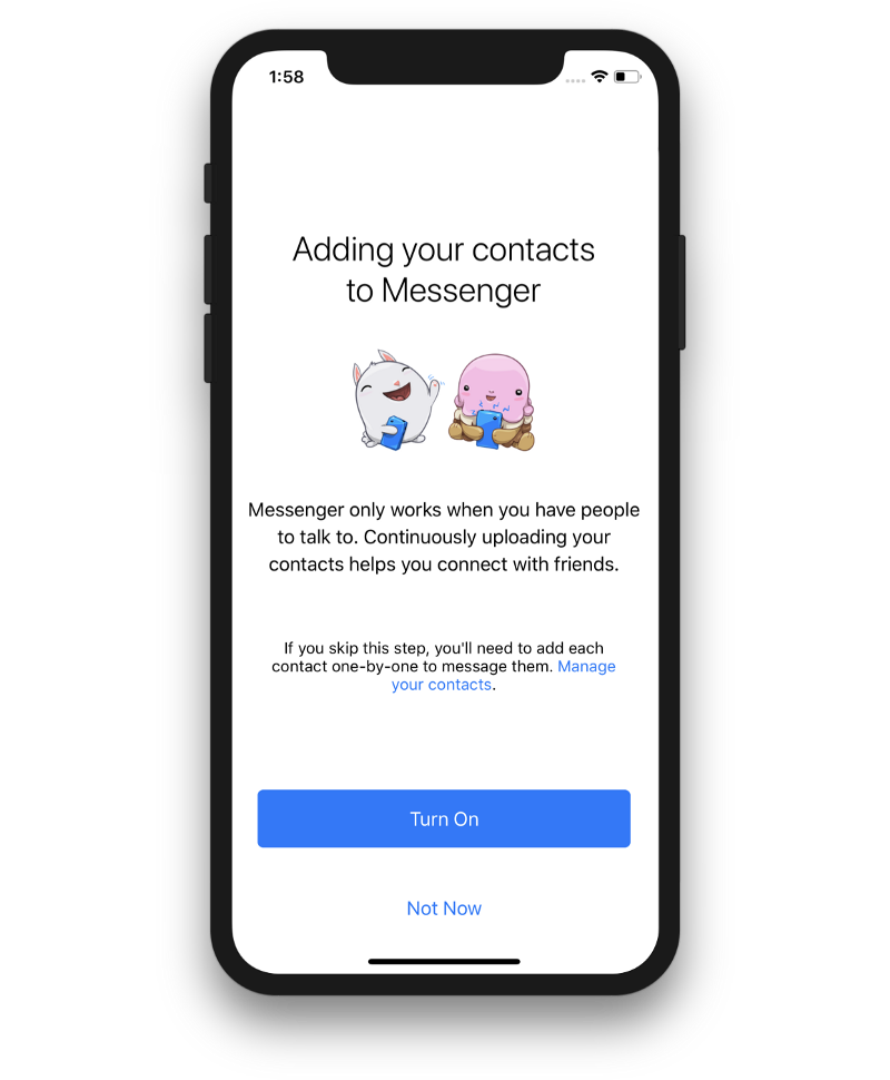 For example, if you’ve ever installed the Facebook Messenger app, you were likely encouraged to continuously upload all of your phone’s contacts to the service. This is framed as a way to help you text people quickly.